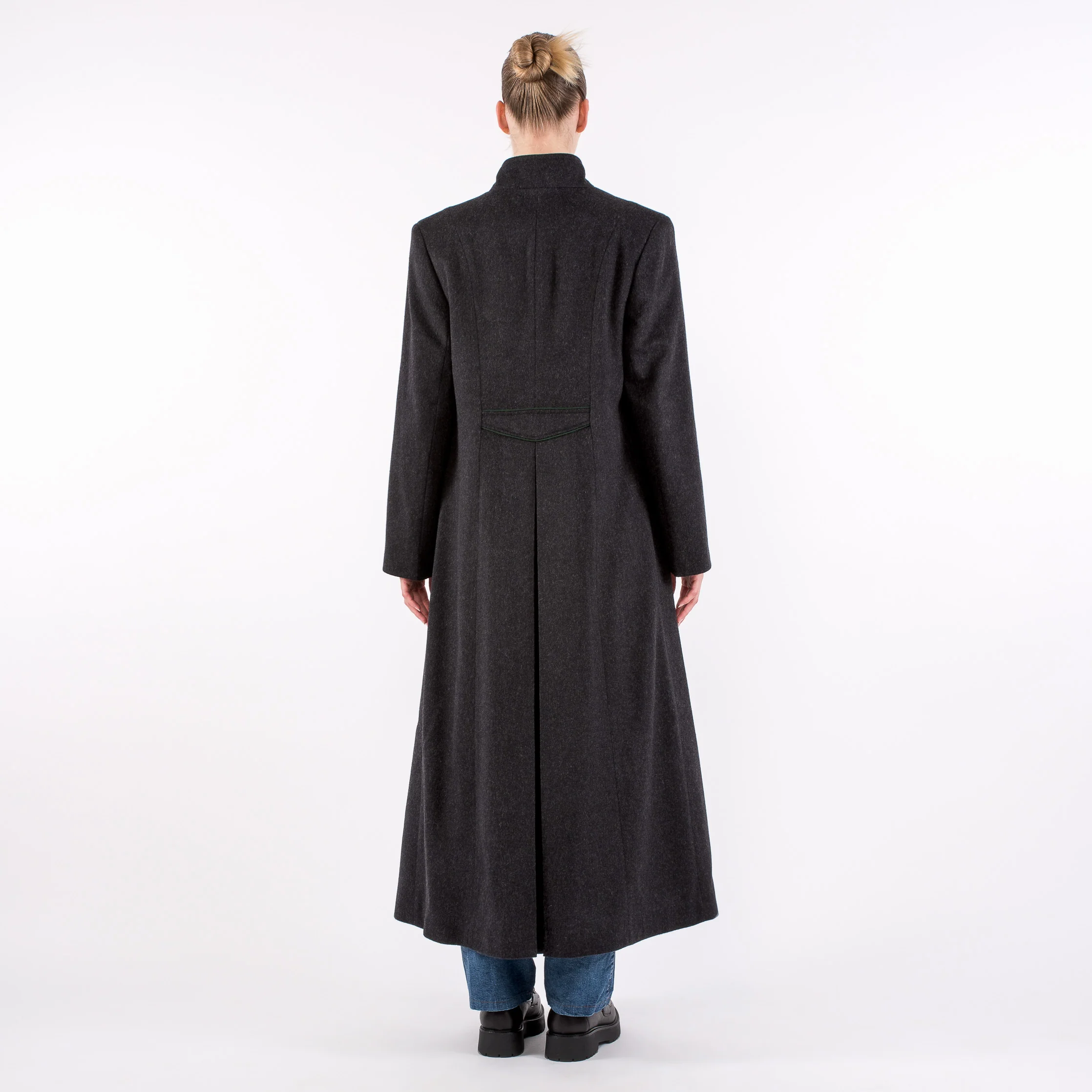 The full length women's wool coat Florentina is an exceptional example of classical European fashion. Although inspired by the traditional Austrian (trachten) overcoats meant for wearing over evening dresses by ladies attending balls or concerts, the Florentina was designed with authentic Müller bone buttons in order to give it a more casual flair, appropriate for a variety of occasions.